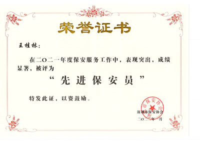 榮獲2017-2023年度深圳市公安局優(yōu)秀保安公司,深圳市保安協(xié)會常務(wù)理事單位(十大常務(wù)理事單位之一)